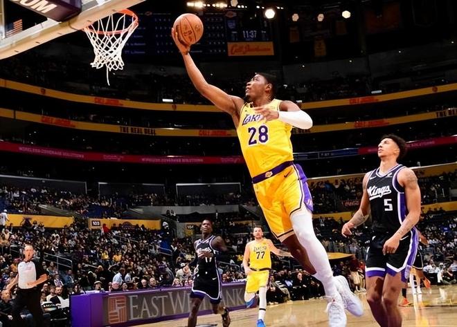 本场比赛,双方在首发阵容上面,国王这边派出的是拉文、克利福德、尤班克斯、施罗德、琼斯,湖人这边派出的是东契奇、里夫斯、文森特、八村塁、艾顿。首节比赛开始,湖人率先拿到球权,八村塁腾空上篮,一气呵成打进本场比赛首个进球;东契奇追身三分正入网心,拉文的弧顶大号三分球,也为国王队开张;克利福德禁区内强行抛投命中,尤班克斯丝滑脚步晃开防守,轻松上篮打进一球,琼斯抡起双锤,毁灭暴扣技惊四座;施罗德抢断快攻,反击一条龙稳稳得手,里夫斯变向之后的急停跳投正入网心。