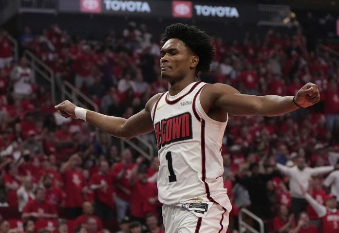 阿门还展现了一些自己的组织能力,10中5拿到12分4板8助0失误,并且他在进攻端的无球跑位还非常好。如果后续他的组织可以练出来的话,这是让人兴奋的点。奥科吉加盟火箭之后一直都可以保持稳定输出,外加防守端的强度与效果,他可以给到全面的带动,这个点对于火箭的帮助会非常大。
